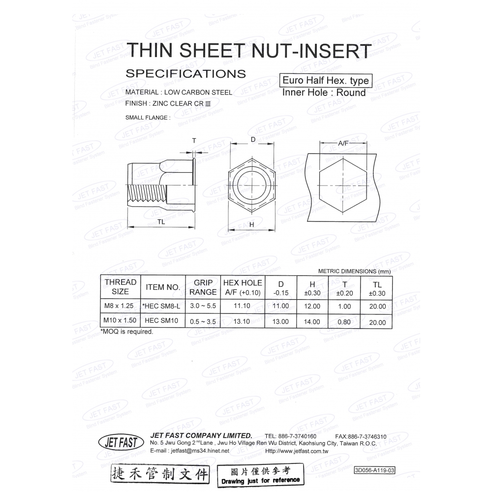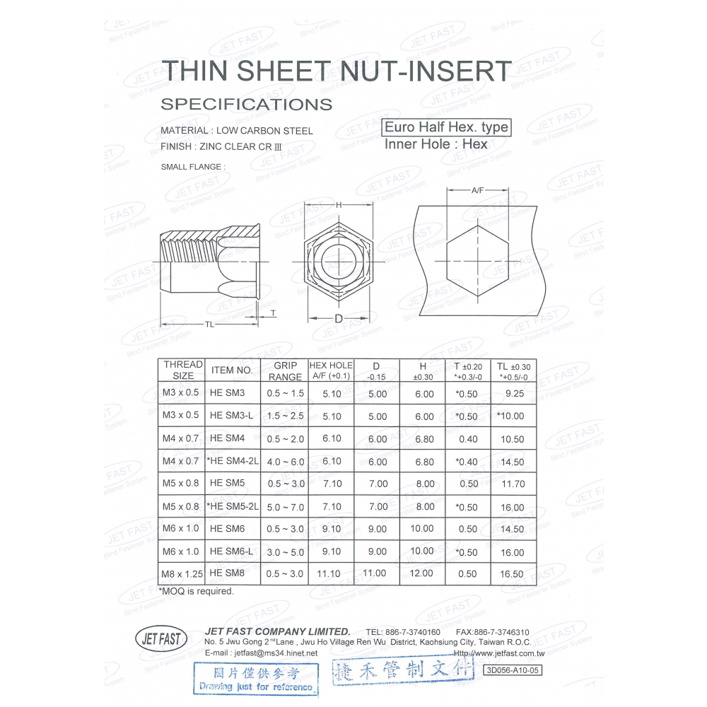 - 金属リベットナット - 低炭素鋼 - 半六角 (HEC)