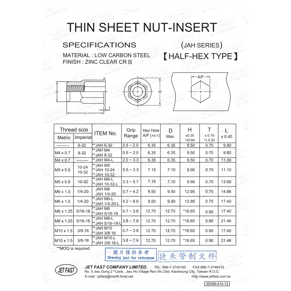- 金属リベットナット - 低炭素鋼 - 半六角 (JAH)